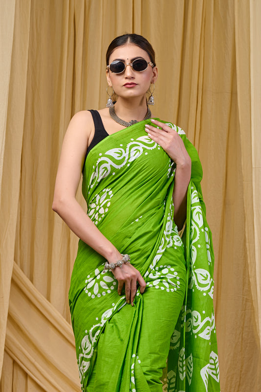 Printed Sky Blue Shibori Print Cotton MulMul Saree