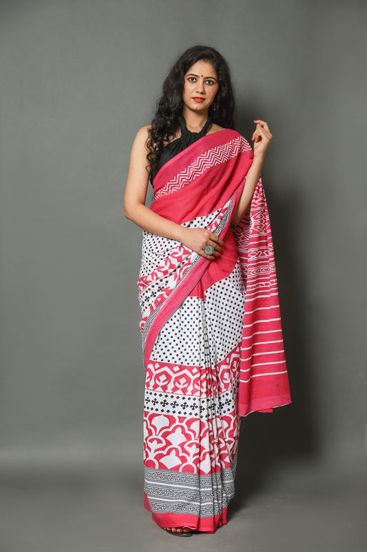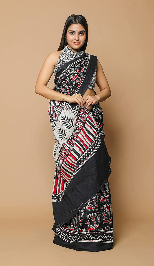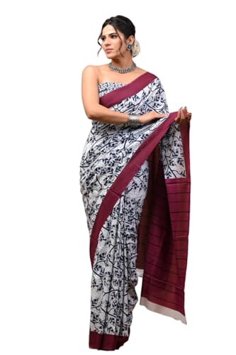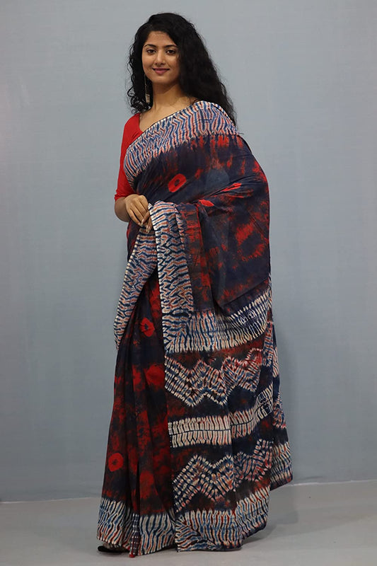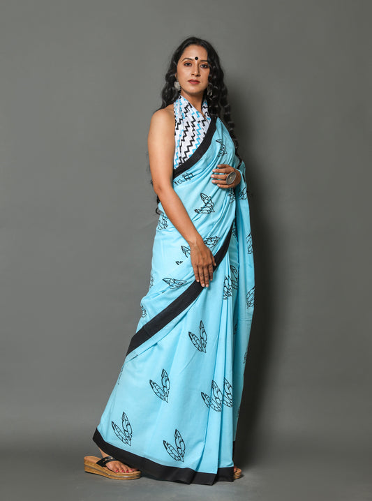 from 228 reviewsPrinted Blue Dabu Print Cotton MulMul Saree