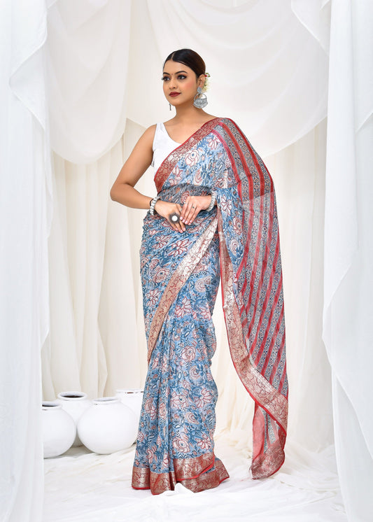 from 228 reviewsPrinted Blue Dabu Print Cotton MulMul Saree