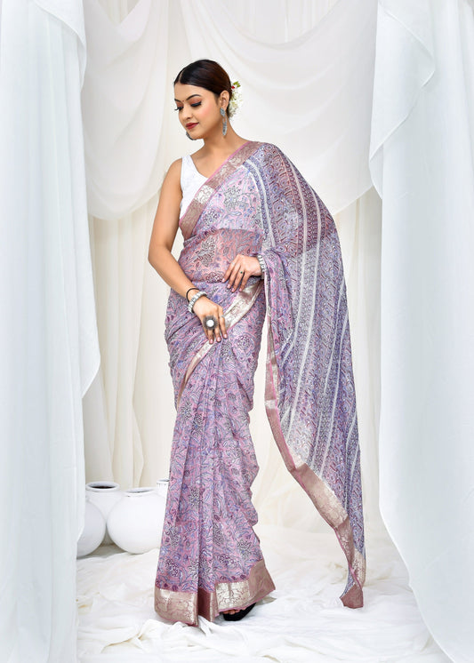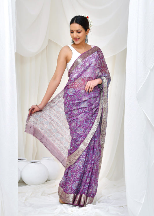 57% offPremium Purple Chiffon Saree