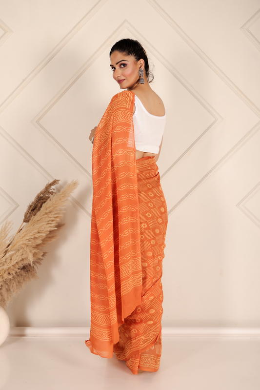 45% offPremium Orange Organza Saree