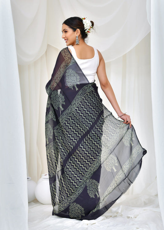 from 228 reviewsPrinted Blue Dabu Print Cotton MulMul Saree