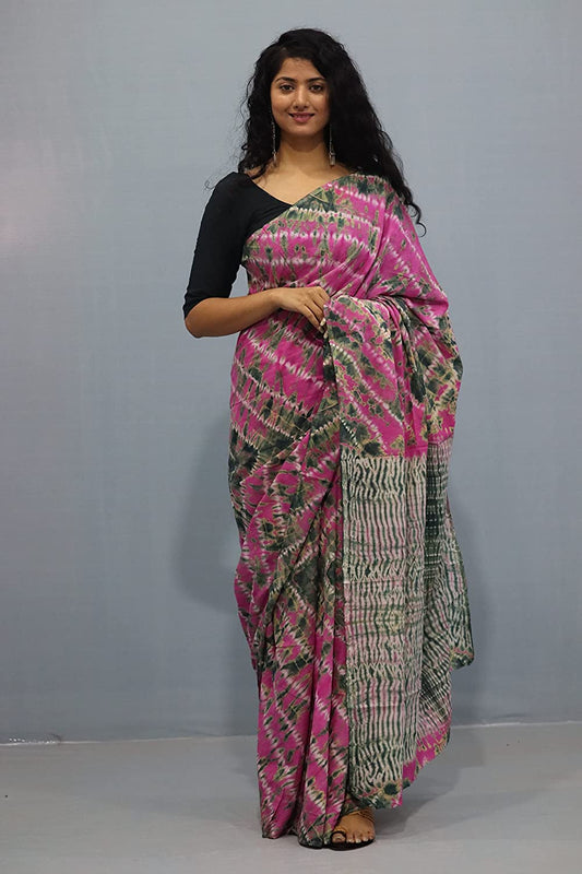 Printed Sky Blue Shibori Print Cotton MulMul Saree