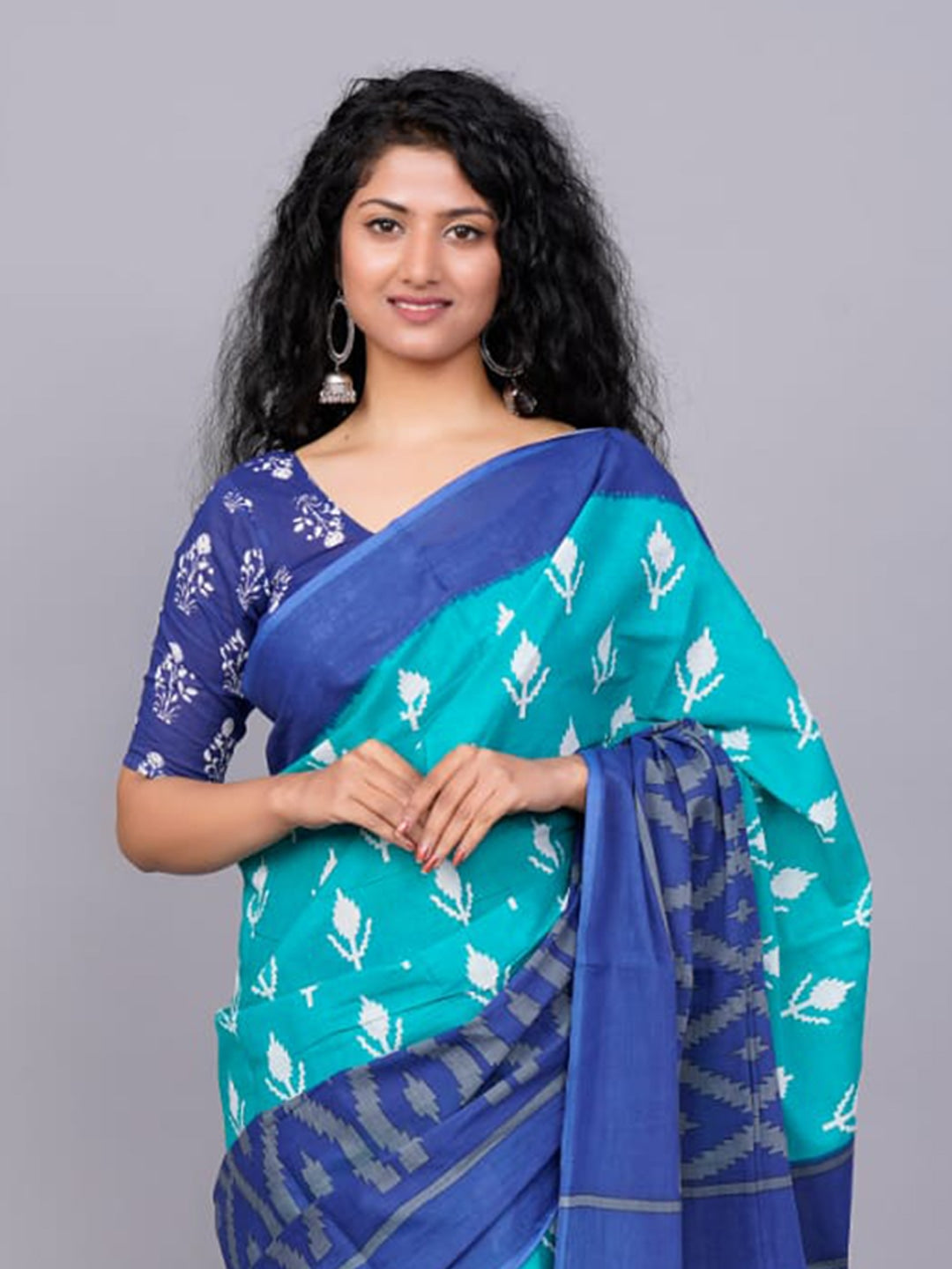 from 228 reviewsPrinted Blue Dabu Print Cotton MulMul Saree